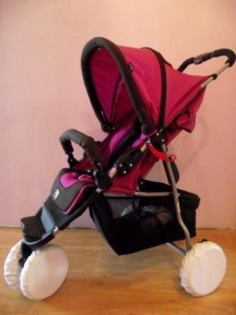 Чехлы на колеса я тоже шила сама из остатков какого-то полиэтилена...