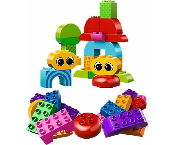 На самый юный возраст нам оказался более интересным набор с дверцами и окошками. Ну и активно все разбирал и громил. Сейчас в 2 года уже строит башни, краны, комнаты на доске, собирает сам поезд, уже интересны персонажи — животные, машинки, самолеты, рыцари.А на фото в наборе детали и глазки. Не очень интересно. Просто будет разбирать и все