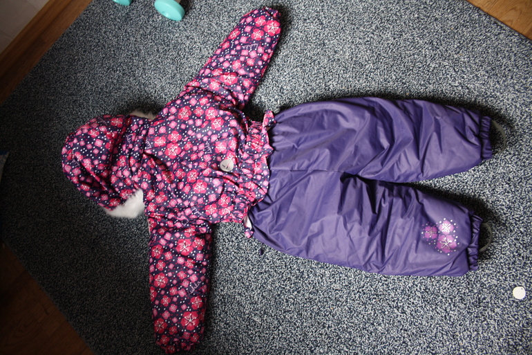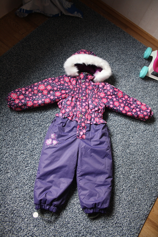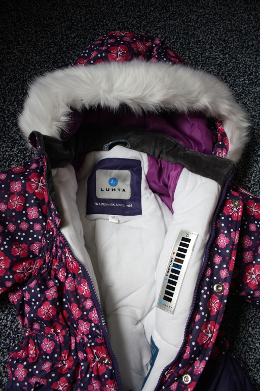 Наш комбинезон-только сегодня забрала Luhta рост 98 (Соня 94) с запасом на всю зиму, Утеплителя 300г. Очень легкий , ткань непромокаемая, ветрозащитная, ощущение что будем одевать без промежуточного слоя.Внутри градусник.