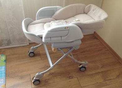 Здраствуйте. Это люлька — стульчик от Комби))) Она трансформируется в 5 различных предметов – колыбельная, пеленальный столик, шезлонг, столик для кормления и игровой столик.