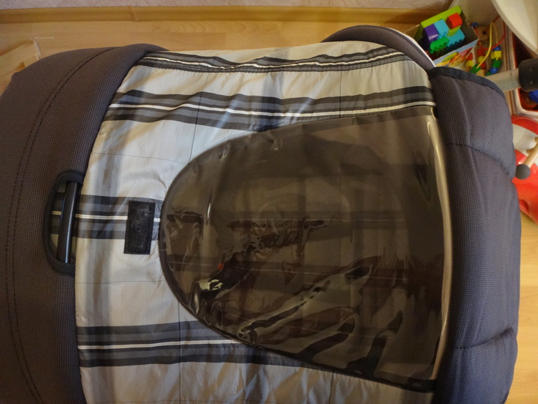 Вверху большое смотровое окно, которое закрывается текстилем, если не нужно: