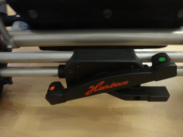 Тормоз у Хартана потрясающий. Такого я еще не видела нигде. Это самый удобный тормоз из мною испробованных. Нет резких щелчков, не нужно усилий, сам он маленький и очень удобный:
