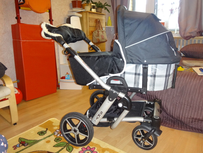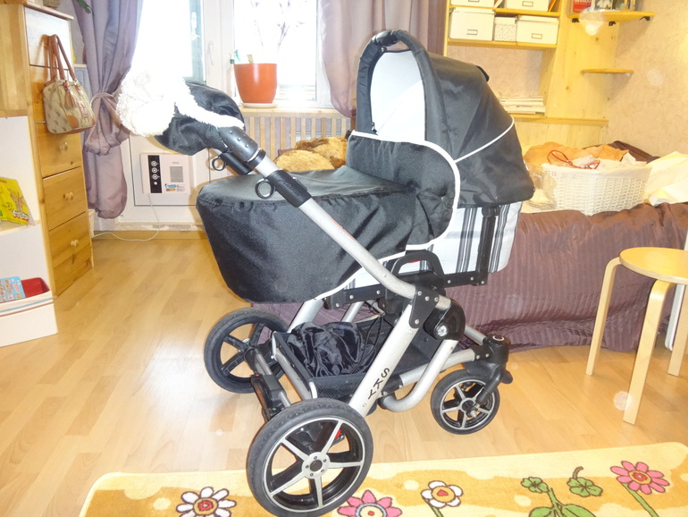 Теперь смета: сама коляска с доставкой до РФ из Германии около 730 Евро + аксессуары кому что нравится. Накидка 35 Евро, москидка 30 Евро, муфта столько же. По сегодняшнему курсу дороговато, в 2012 было куда дешевле! Сейчас бы я еще подумала, заказывать ли в евро... Вот такой обзорчик получился.