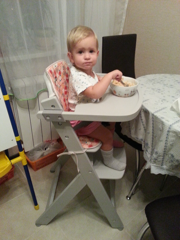 Классный стульчик, самое главное удобный и не громоздкий! Доча выросла как, я вот на свою все смотрю и не верю, что когда-то она лежала, и не могла даже на бочок перевернуться)))) скажи мне а как у вас щас с количеством съедаемого, ты писала, что не пюре ест мало. Щас улучшилось?