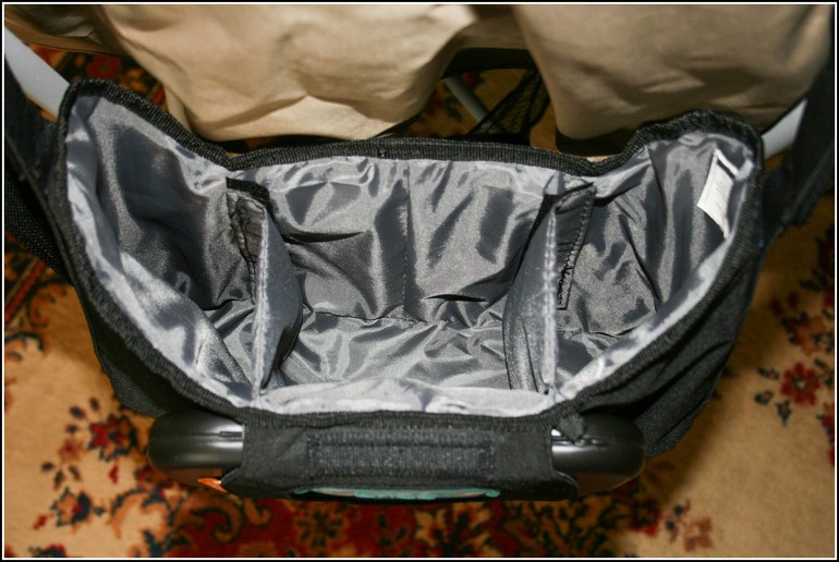 Продумана буквально каждая мелочь. Сама сумка из плотной ткани с термо-прослойкой. Между двумя отделениями для бутылок есть отделение для кошелька, ключей и пр. А самое главное, что в отличии от всех остальных сумок такого рода это отделение закрывается, что защищает содержимое от внезапных природных осадков и любопытных носов.