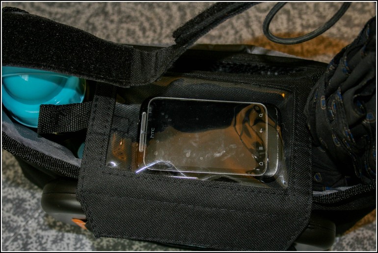 Крышка представляет собой отделение для мобильника. Его прозрачная часть "touchable", т.е. позволяет управлять происходящим на экране не вынимая девайс. Слева кармашек закрыт фиксатором на липучке, но и без него достать содержимое довольно трудоемко. Пожалуй, это можно отнести к минусам, как и заглушка звука. Хотя, есть шанс что я еще не приноровилась или беда в моем дибильном мобильнике(((