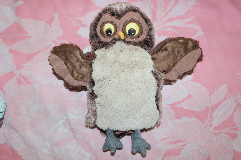 И совушка) начиталась про нее в группе, все детки ее очень любят, ну и не удержалась... Костя не очень любит плюшевые игрушки, но сова ему понравилась) особенно когда мама на руку одевает))