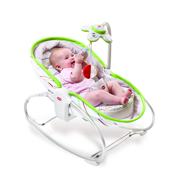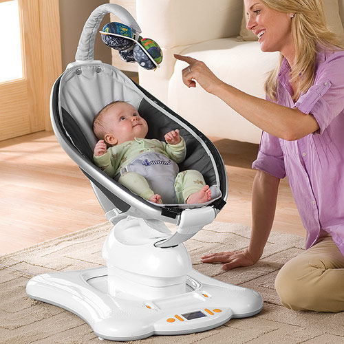 3.Электронный шезлонг - качели 4 moms MamaRoo. Имеет разные режимы укачивания, встроенный плеер, но мои знакомые утверждают, что быстро ломается, а ещё, то, что ней нельзя пользоваться с самого рождения.