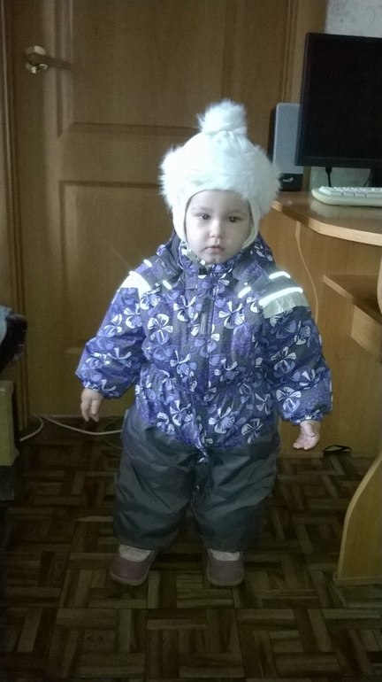 Вводные данные : почти 1,5 года, средне активная, после -12 думаю гулять не пойдем, ладошка 10,5 см. Второй комбинезон ярко розовый виллервалла