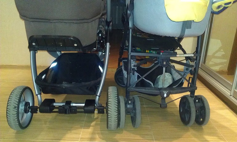 Размеры, замеры, вес (коляски, одежда, обувь) - сводные таблицы, информацияЛетом мы удачно откатали свою старенькую Инглезину люльку, настал момент подготовки к зиме и мы прикупили Тевтонию Космо. У нас очень узкий лифт!!!58 см.((( поэтому мы выбирали только узкие модели! Пишу больше про инглезине , она у нас давно, а Тевтония только привезена! Это абсолютно две разные, но любимые мной коляски, купив тевтонию ну никак не собираюсь отказыватся от инглезины... Начну с Инглезины. Старший сын родился весной и мы удачно откатали люльку, осенью он пересел в прогулочный блок- он более утепленный , я как неопытная мама не знала что зимой на двойных колесах очень сложно, но спасибо погоде две зимы мы откатали без особых снегопадов)))) гуляли по три часа в морозы до -15 ребенку в конверте меховом и коляске было тепло! Только разок мы попали в снеговую жижу и я поняла какой это ужас!!!