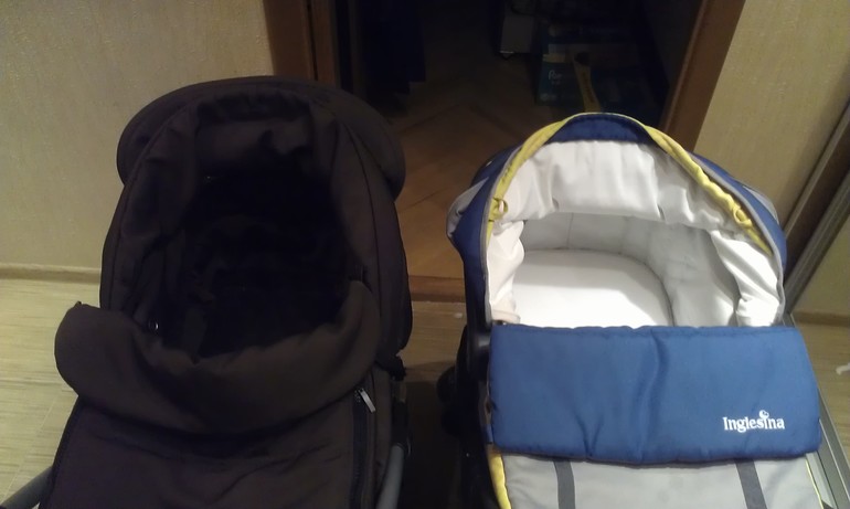 Благо ребенок не спал, ему уже было 2,5 года , он встал и мы прошлись пешком! Летом в магазинах и на прогулках она не заменима. Легкая, маневренная, но амортизация минимальная!!! Удобная сумка, подстаканник,сетка в низу низковата и собирает бордюры. Люлька маленькая только для лета, она узкая!!! 24 см в ширину и 70 в длину! А второй ребеночек родился в середине лета и пока в осень входит в лежачем блоке, а в инглессине прогулка полностью горизонтально не раскладывается, да и колеса не зимние! В общем смотрите, вначале характеристики, потом много фото- но пока только люльки, прогулку добавлю позже когда соберу ее на местг в Инглезине Характеристики Общая характеристика Универсальная, для одного ребенка, четырехколесная Возраст: 0+ месяцев Конструкция: трость Вес: 9,2 кг. Ширина шасси: 54 см. Год выпуска: 2008 В комплекте Жесткая люлька, вес: 3,8 кг., внутренний размер, д×ш: 76(70!!!!внутренний)*31 см( возле головы) .Накидка на ноги Дождевик Солнцезащитный козырек Корзина для покупок, из ткани Подстаканник Смотровое окно Подробности Горизонтальное положение спинки Регулировка наклона спинки, число положений спинки: 4, максимальный угол наклона спинки: 180 ° Ремни безопасности, пятиточечные Перекладина перед ребенком, съемная Регулировка высоты подножки, число положений подножки: 2 Размеры Длина: 86,5 см., ширина: 54 см., высота: 118 см. Размер в собранном виде, д×ш×в: 37*99 см. Колеса Тип колес: пластмассовые, диаметр: 18,5 см., съемные Двойные передние колеса Двойные задние колеса Поворотные передние колеса, с фиксацией Возможность установки Люльки, адаптеры для крепления люльки Автокресла, совместимые автокресла: Inglesina Прогулочный блок Всякая всячина Возможность стирать чехол Дополнительная информация: Возможна комплектация как твердой, так и мягкой люлькой Lounge.