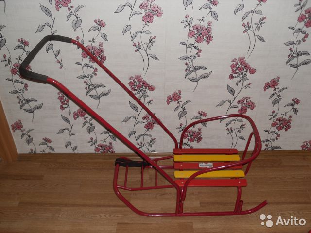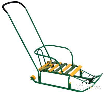 А у нас на подобии первых санок. Такие же зеленые. Но толкать под таким углом с железной ручкой не удобно. Тоже купили в том году. Катались в итоге в коляске, так как она еще спала в коляске иногда. В этом году хочу как коляску санки. Вместо колес-полозья.