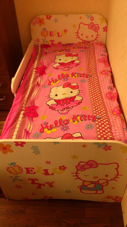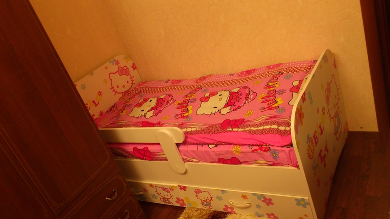 Начну с того, что кровать искала очень долго и тщательно. Что имеем: Ребенок- дочка- 2 года 10 месяцев, пространство в комнате относительно небольшое(Кровать-чердак не поместится) и бюджет в пределах 20000 рублей( на саму кровать и матрас). Перелопатив весь интернет, я случайно забрела на страницу производителя данной кровати. Выбор меня очень порадовал. Дочурка у нас не особо любит спать отдельно от родителей(спали в кроватке, придвинутой к родительской кровати), и поэтому при "переселении" нужно было брать чем - то, чтобы с охоткой спалось на новом месте. Так вот. На этом сайте огромный выбор моделей как самих кроватей, так и персонажей,изображенных на кроватях. Тут и для мальчиков, и для девочек найдется много. Китти, Тачки, Смешарики, Фиксики и много-много. Ну наша любимая Китти мне и запала в душу. Я позвонила по телефону. Мне ответил молодой человек Руслан. По всем вопросам обращалась впоследствии к нему. В любой момент можно было позвонить с вопросом, трубку всегда он поднимет и проконсультирует. Вообщем, качество обслуживания меня порадовало. Заказ был оформлен быстро. Я выбрала кровать, матрас и наклейку над кроватью с изображением Китти и именем дочки. Также попросила боковой бортик от кровати сделать не 80 см, как стандартный, а 1 метр. Производство находится в Ульяновске. От момента заказа до получения кровати в транспортной компании в Москве прошло примерно полторы недели. Я считаю, очень быстро. Кроватку собрали. Собирается достаточно просто. Качество меня очень порадовало. А внешний вид, так вообще-выше всяких похвал!! Такая девчачья кроватка получилась, такая мимишная. Вторая дочурка подрастет, такую же закажу. Отдельно хочу написать о матрасе. Матрас за 6000 р такого качества нигде не найти. у нас на взрослой кровати лежит орматековский матрас за 30000. Так детский матрас ничем не уступает. Такой же в меру мягкий, в меру жесткий, и чехол у него красивый очень! Вообщем, я осталась довольна всем!!! Могу смело рекомендовать!