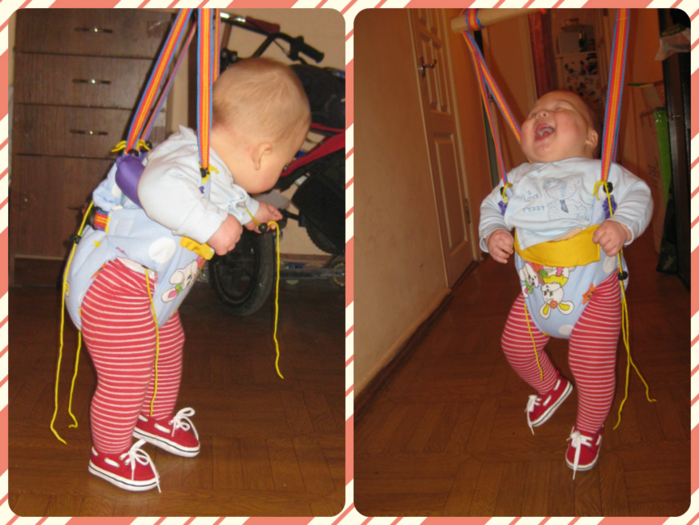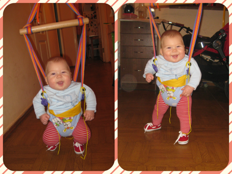ООООООооооо...Клево))))))))!!!! У меня сын до 1,5 лет прыгал))))))))))Хохотал так зажигательно. У нас прыгунки в коридоре висели, я пока в туалете или ванной ( они напротив так что я сына вижу) как раз успевал напрыгаться))))) Прыгунки — это Вещь!!!! Особенно , если с ТАКОЙ радостью))))Пусть Малыш прыгает на здоровье!!!