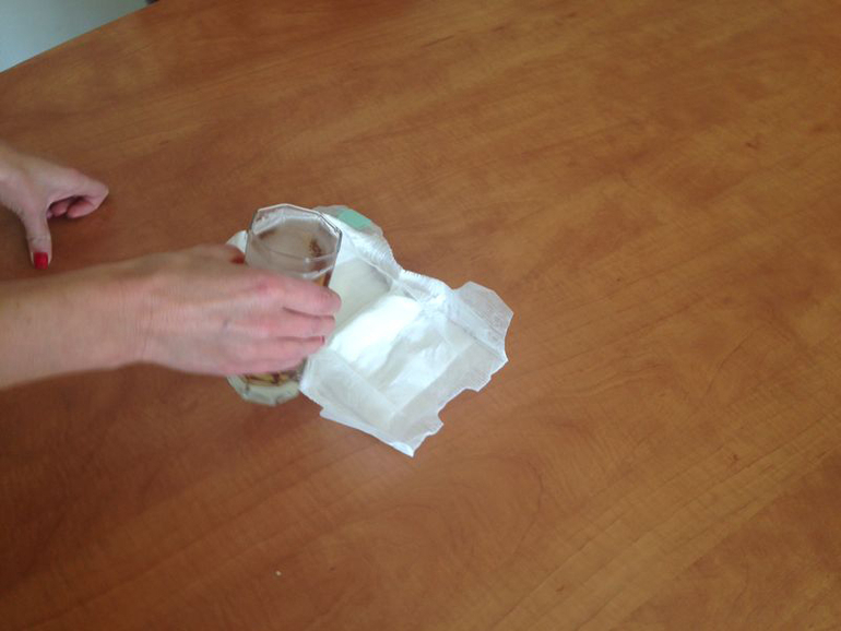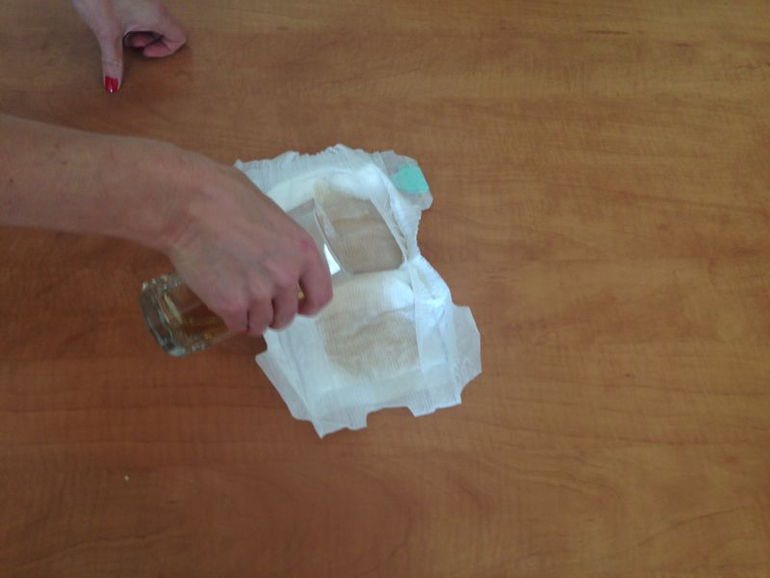 Взяли почти пол-литра воды и маленькой струйкой пустили на подгузник.