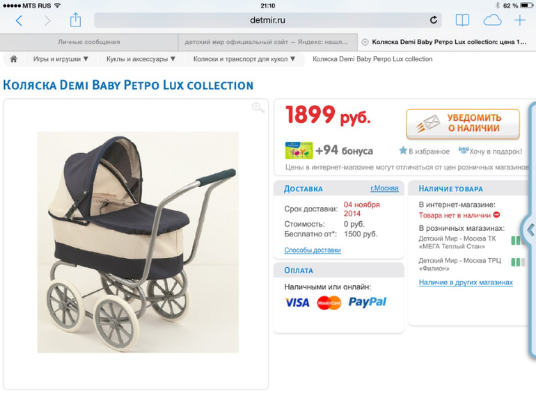 покупала в мазекея, у нас на сайте уже нет, вот нашла http://mothercare.uz/davayte-predstavim/4734--kolyaska-dlya-kukol.htmlкап держится отлично, у него только 2 положения, если открыть коляску, он держаться не будет, надо зацепить резиночкой