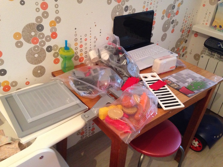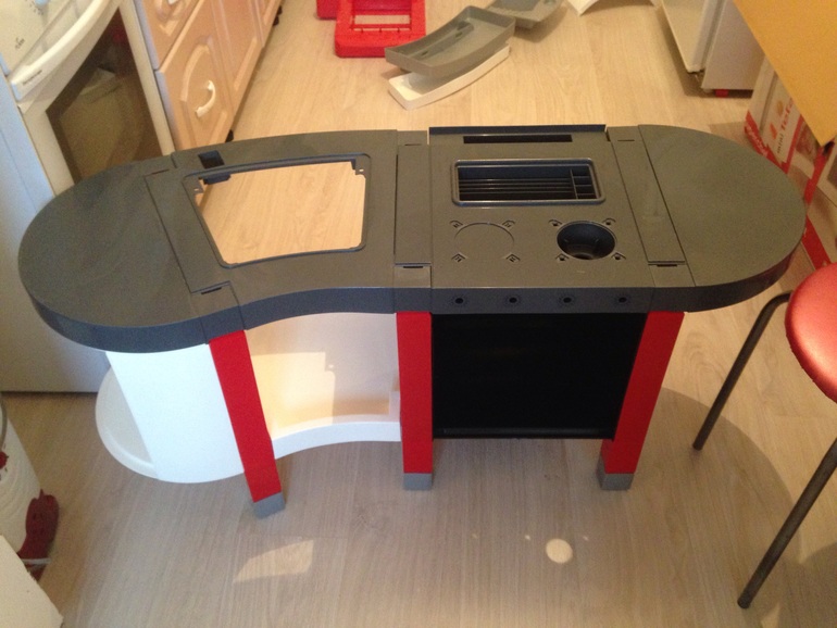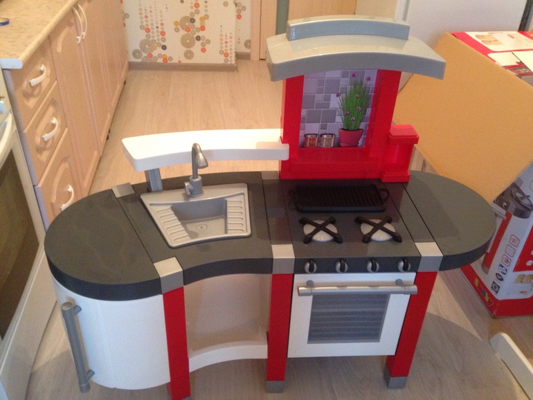 Собрала кухню! Кое где пришлось немного поломать голову, кое где ногти, но собрала) что могу сказать.. Ощущения не однозначные. Выглядит конечно все супер, но пластмассовые поверхности кое где кривые, дверка холодильника и духовки немного скошены, может встанут еще... Раковина никак не крепится, и когда поворачиваешь кран вылетает (думаю решим это с помощью супер клея)))) у нас без функции воды! Овощи так себе, но у нас уже есть куча с мамси. Тостер прикольный, но такой мааахонький, чайник еще нужно докупить. Все надписи в комплекте в виде наклеек. А так вполне ничего, зануси в дет мире попрочнее выглядела, но я не трогала, может ошибаюсь. Однозначно 11 тыщ, как у нас цены, она не стоит!!! А за 7 вполне ничего) ну и фото поэтапные, правда под конец увлеклась и пару этапов пропустила)) а, еще хочу отметить огромным плюсом, что нет никаких шурупов и гаек, все на защелках!
