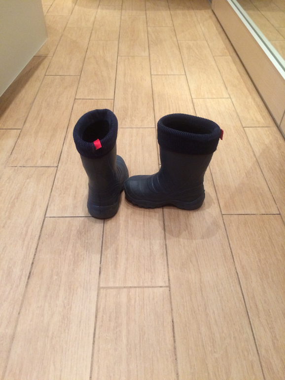 Купив, сапоги, сперва решила их сдать обратно, так так я не угадала с размером, мы сейчас носим 23, а сапоги 24-25. Да, и подумав, решила, зачем нам еще одни. Но пока соображала, чек потерялся и сапоги мы оставили, так сказать, на будущую весну. Но когда, в деревне, пришла та самая погода, одев обувь на ребенка, я осознала - это то, что нам нужно! Самый идеальный вариант. А приехав в город, одев один раз ботинки, я поняла, что рано я рассталась с таким "другом".