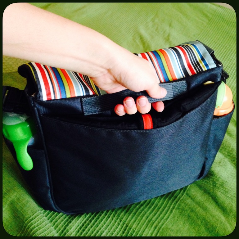 Это короткая ручка в верхней части сумки.В первый же день использования,сумке довелось отправиться с нами в поликлинику,там нам нужно было несколько раз открыть сумку,достать содержимое(талон для посещения,коврик-пеленка,подгузник,блокнот и ручка),отставить сумку,потом снова взять,открыть,закрыть,уйти..и каждый раз при этих коротких но требующих быстроты манипуляциях,под рукой оказывалась эта волшебная ручка,за которую я хватала сумку.Это такая мелочь,но такая приятная мелочь,когда понимаешь,что это возникло будто бы специально для тебя прямо в этот момент,что бы тебе было удобно.Сумка,понимающая маму:)