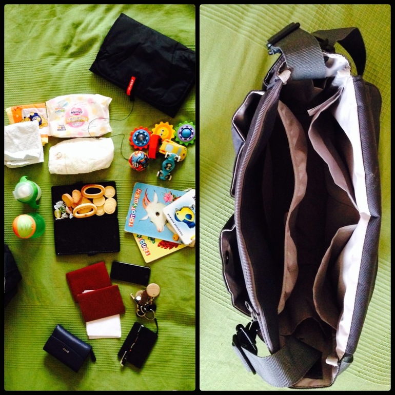 В первые пару дней у нас была притирка.Я не впервые имею дело с сумкой для мамы и уже знала,чего хочу и могу ожидать от нее.Перед этой сумкой я пользовалась большой мамской сумкой,в которой было порядка 16 карманов и огромное основное отделение.Я считала,что большой размер сумки и количество карманов поможет мне наконец все упорядочить и не возиться над сумкой в поисках того или другого.