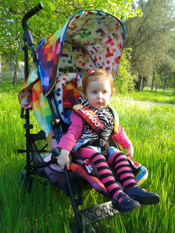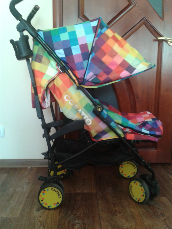 Складывается-раскладывается легко, сбоку есть ручка для переноса в сложенном состоянии, сама стоит в слож.сост. Сиденье 32см, для крупных деток наверно маловато будет. Главный плюс это — Комплектация коляски супер!