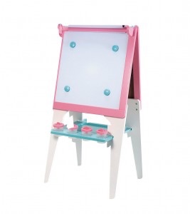 У нас такой, в дневнике у меня есть пост про 2 года дочке, там есть фото. Все в нем хорошо, только не складывается и по мне немного грамоздкий. Еще планка куда бумага одевается, там не продумано надо все время отверткой откручивать чтобы рулон поменять. Родной рулон бумаги дорогой. Я беру на замену из икеа, но он шире и в прорезь для бумаги на самом мольберте не вхрдит, но это сущий пустяк.