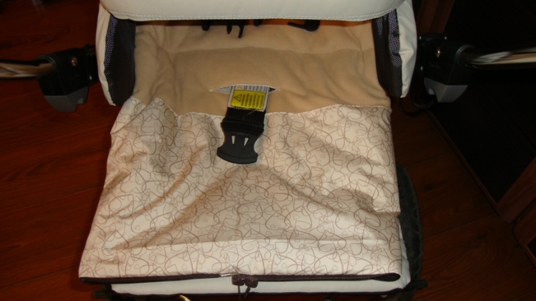 Внутри конверта универсальные прорези для ремней, защита от грязных ножек из той же плащевки что и верх.