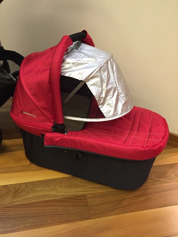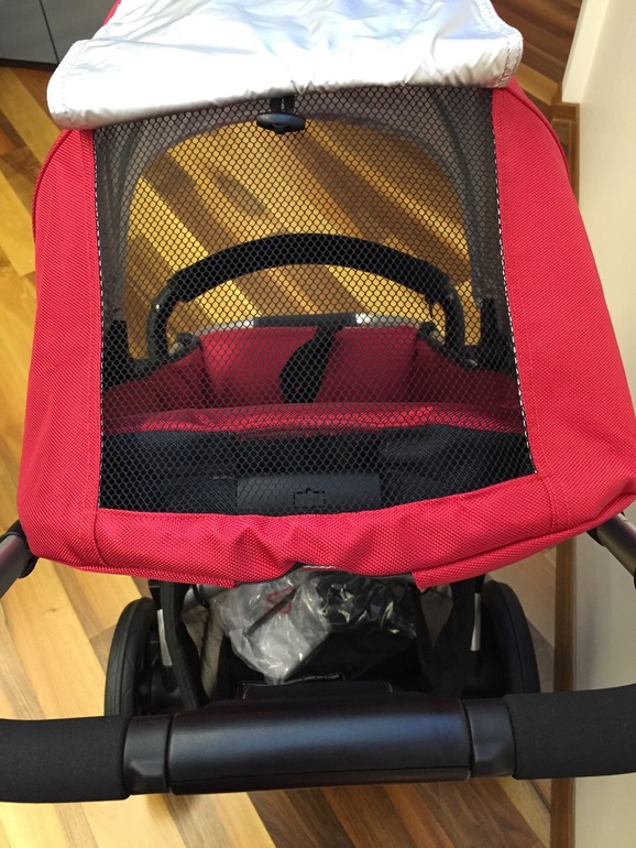 На прогулочном блоке капор и правда гигантский, закрывает почти полностью ребенка и фиксировать можно в разных положениях.