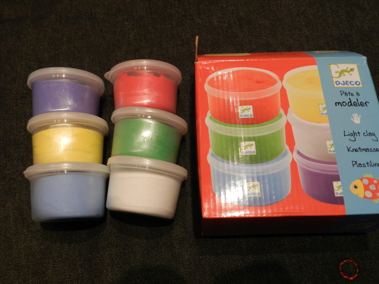 А это - до кучи: пластилин Djeco и их же губная гармошка. У сына пока недостаточно сил, чтобы играть на ней. Он дует, но звуки не извлекает. Он их "поёт" голосом :)))