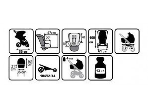 Плюсы: качественный текстиль, амортизация, горизонтальное положение прогулки, регулируемая подножка, глубокий капюшон.