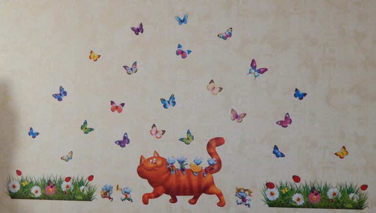 Украсили комнату, где бОльшую часть времени находится доченька. Наклеили, когда ей было 1,5мес. Я думала, что еще вряд ли как-то отреагирует, но как же я ошибалась!!! Ей сразу понравились наклейки! Фото в подкате...