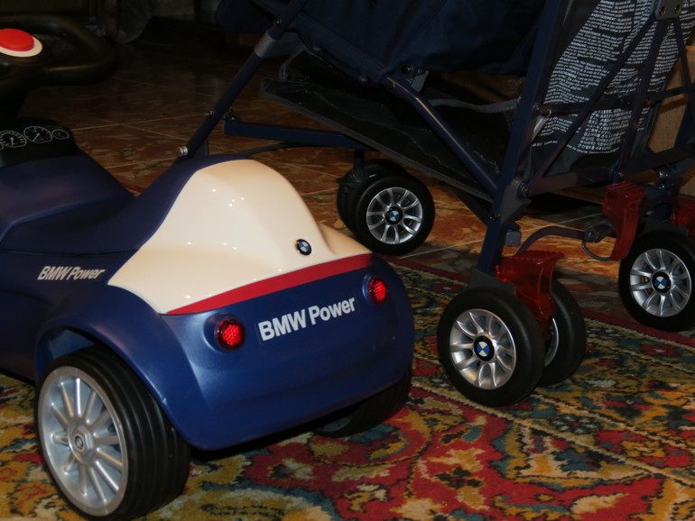 У нас тож машинка такая)Пока катаем его сами)))А БМВ коляс хочу весной взять,вместо XLR)