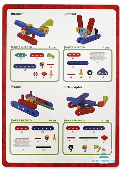 О, как я довольна им)), правда Леня порвал все инструкции, т.е. брошюрку с моделями, но я вырезала кусочек от коробки, где они все изображены, мелковато правда - приходится подумать).