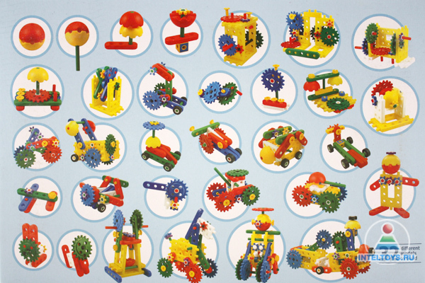 Так вот, пришла мне в голову идея приобрести еще один такой конструктор, что бы деталей было побольше, ну и, соответственно, полет фантазии)). Набрала в поисковике название и вышла на сайт с детскими игрушками, там аж 19 видов конструкторов этой фирмы. Несколько из этой серии, т.е. детали совместимы, только еще цветов других и возможных конструкций больше. Я выбрала вот такой, и мама тут же его заказала:
