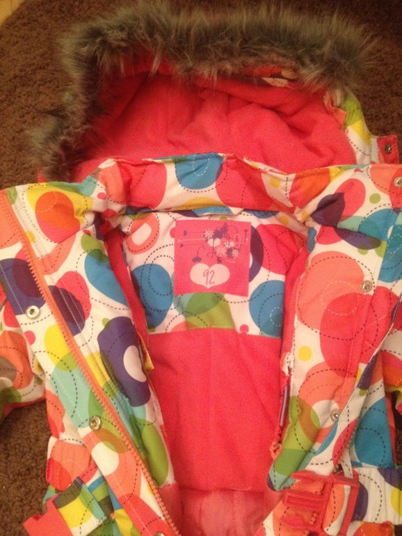 Там мне очень понравился один комплект: куртка в горох (примерно как в комбезе, только флисовый подклад бирюзового цвета) и штанцы красивого сиреневого цвета)