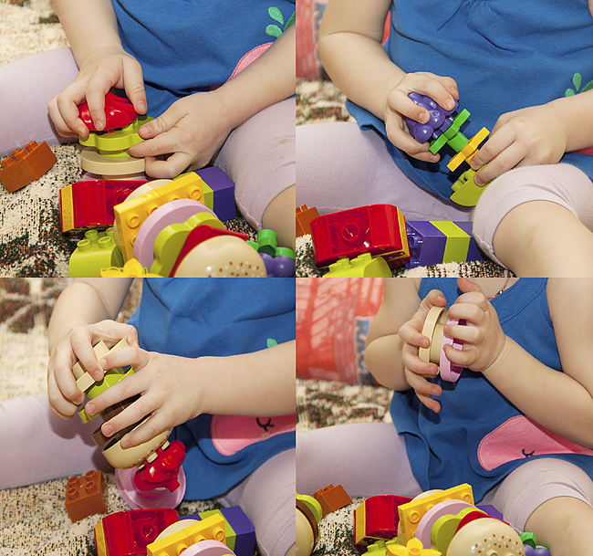 Кубики очень удобно ложатся в детскую ручку, трудностей в соединении нет вообще, все друг к другу подходит идеально. Простор для детской фантазии просто огромен, вариантов приготовления различных бургеров великое множество.