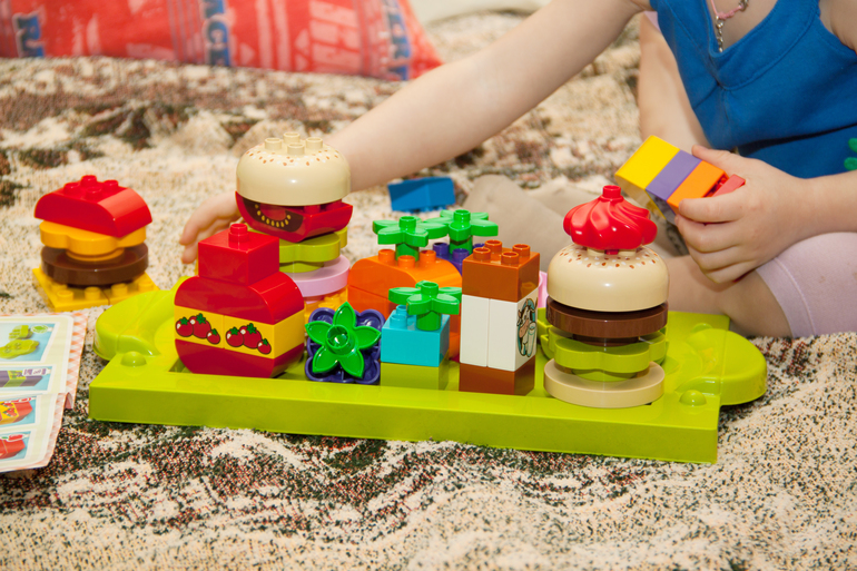 Поначалу потребовалась моя помощь, нужно было рассказать ребенку какая часть конструктора что собой представляет (булочка, сыр, мясо, салатик и т.п.).