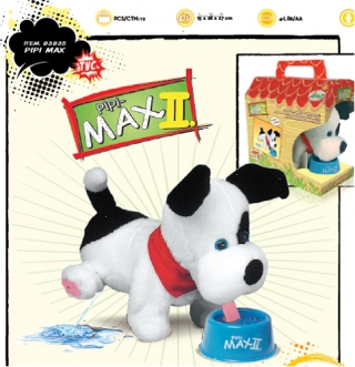 У нас был Мax. Пил, писал, ходи и лаял. Как не странно ребенок в сильном восторге от него не был. Со временем перестал писать и лакать, может засорился от редкого использования. Хотя игрушка очень милая на вид.