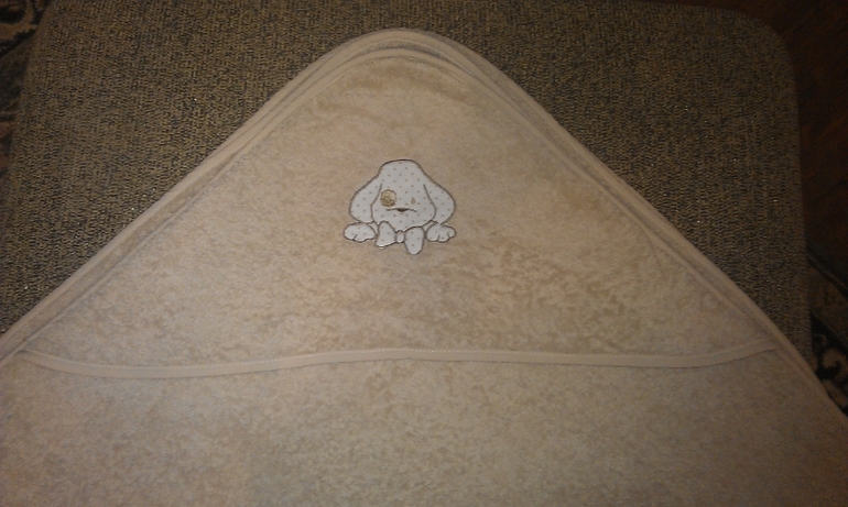 Очень долго искала дочке большое банное полотенце с уголком (на голову который одевают), но размера больше 90х90 мне не попадалось. Для сына уже и не искала (не надеялась) и взяла что есть. А вчера была в магазине "Твой дом". И о, чудо. Попалось детское полотенце размером 110х110. Не самое дешевое, чуть меньше 600р, погрубее, чем в мазекеа, по качеству похоже на феретти. Зато сынулю, 9 кг своего счастья, теперь могу уютно заворачивать после ванны.