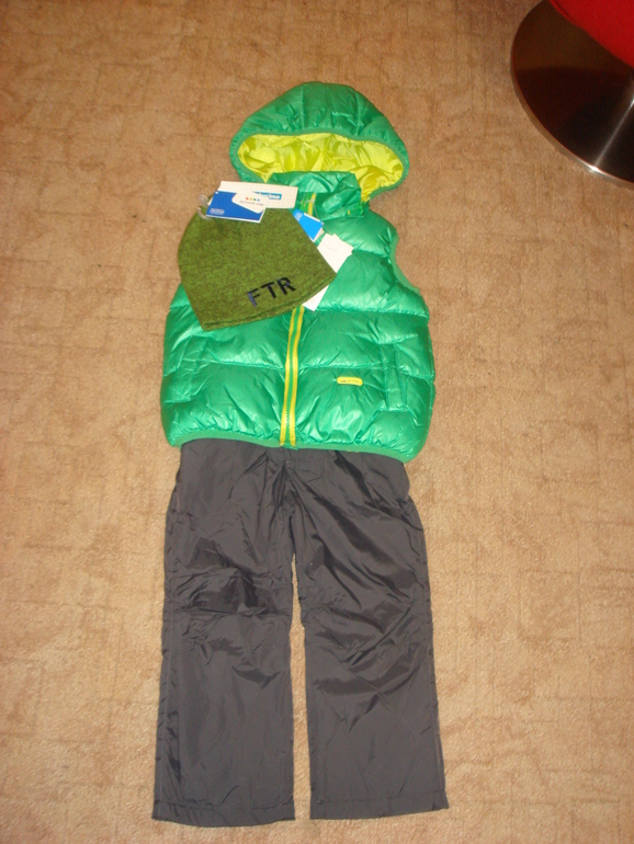 Брюки синие тоько начнем носить,серые брюки тоже носим,шапку и жилетку.Была бы в этом году такая же распродажа-взяла бы еще такую куртку