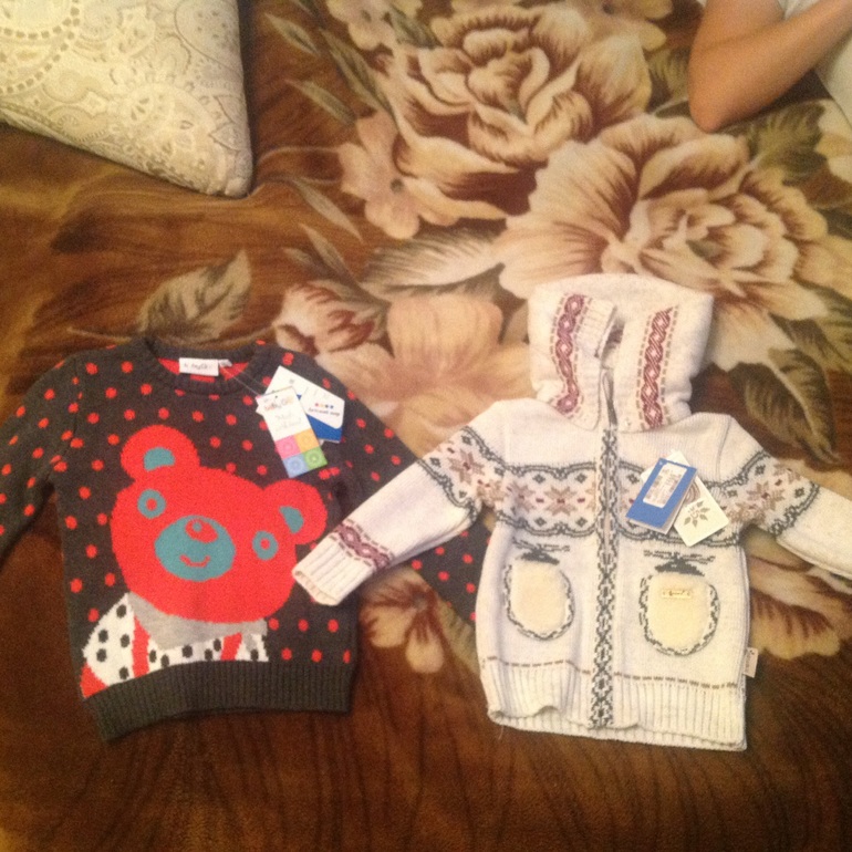Только хвасты! (одежда и обувь)пришло мне это сообщение на почту с кодом со скидкой в 50% на всю одежду в детском мире, я не придала значения этому и удалила его, так оно у меня пролежало 2 дня в корзине. А вчера заметила на ББ массовую истерию с этими купонами и подумала, а чего б мне не съездить и не посмотреть что ж так все истерят по этому поводу))) ну вот сегодня в последний день распродажи купила слитный комбинезон Рейма, свитер шерстяной и кардиган, все на вырост, комбез 92, кофты 86, раздельный комбинезон Рейма 80 рост, как раз на 86 рост будет хорошо, мы сейчас 80 см, потом кофту пончо 104 размер, кардиган и пончо из одной серии очень мне понравилась эта скандинавская серия шерстяных вещей, шапку Рейма. Сумма к оплате была 12352, показав купон сумма к оплате составила 6352. Никогда так мне не везло еще на распродажах. Вот наш улов