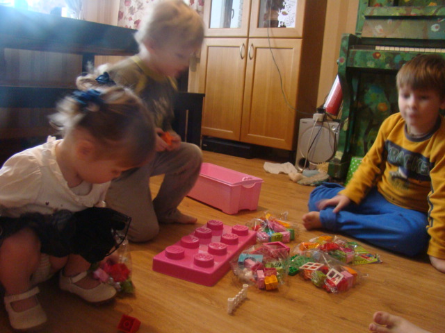 И так весь день. На следующий день все было снова - все сидели и играли с самого утра. У Катюше так и были в фаворитах животные, куколка и цветочки, и башенка, которую она строила из самых маленьких деталях.