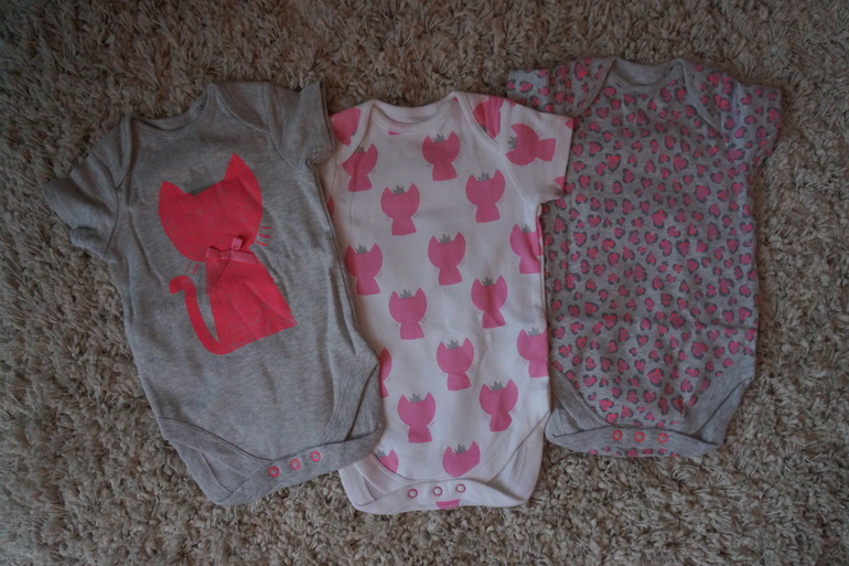 Эти бодики из старой коллекции всем хорошо знакомы. Размер 6-9. Для сравнения приложила наш бодик с длинным рукавом тоже 6-9. Получается, что этот еще больше. Пока откладываем. Притом они на вес 9,5 кг, для дочиных 7,5 кг очень широкие.