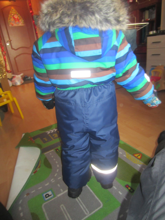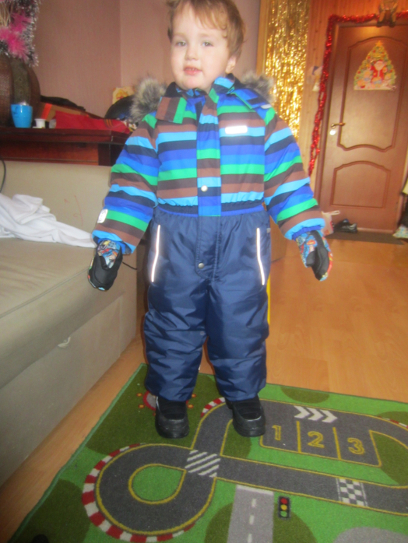 Детская одеждаСлитник керри, куплен на распродаже в Оланте навырост. когда я его брала, продавцы на меня смотрелb с непониманием и только что не крутили пальцем у виска :) 110 размер, типа ребенок настолько не вырастет к зиме. Тогда был рост 92 см, конечно ребенок в нем потерялся. Но вот пришла зима, рост стал 105 см, слитник смотрится теперь так. на мой взгляд, в самый раз. крупный ребенок, широкие плечи, развитая широкая грудь. небольшой животик :) это мы сегодня перед прогулкой.