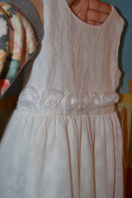 У нас было платье наподобии вашего. Только у нас вместо розочек был бант обшитый бисером.