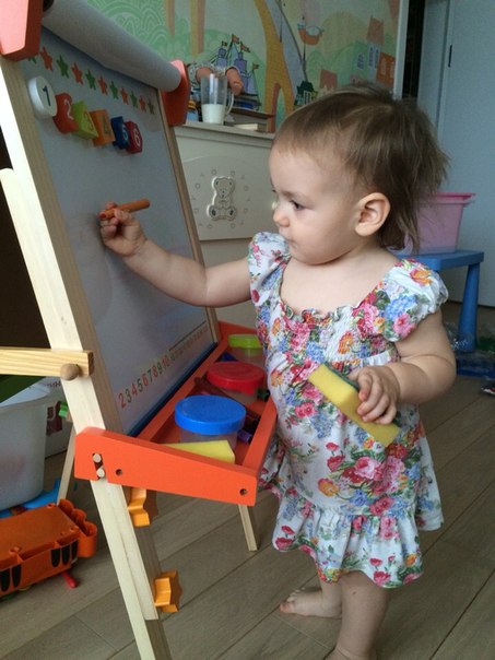 Для Ви - мольберт, краски, маркеры, пазлы, овощи с ножиком и доской.
