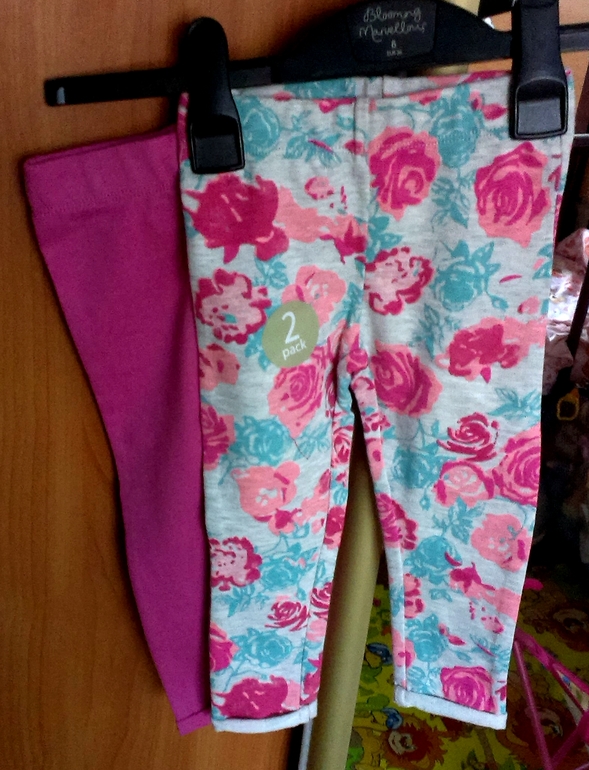 Продается комплектом из двух штук, серые в крупные цветы и однотонные розовые. На фото получились очень яркие, в реале цвета спокойнее. Внизу декоративные отвороты, на пузике обычная резиночка. Состав: 95 % хлопок, 5 % эластан. Первичная цена 649 руб., сейчас со скидкой 300 руб. На бирках COOL CLUB, сделано в Бангладеш.