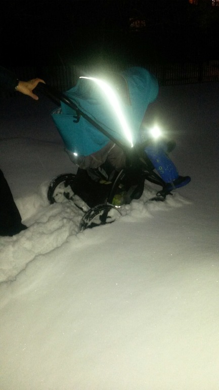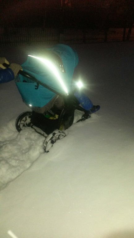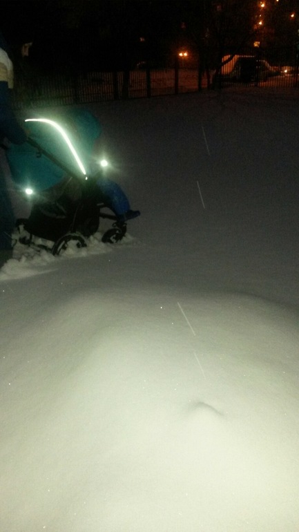 Выставка наших колясок (только хвасты)Нашла сугроб на территории школы и проехала, с ребенком в коляске. Высота сугроба примерно по икре. Судите сами
