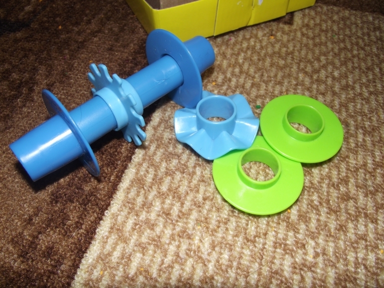 Также прилагается трубочка, которую можно использовать как скалку, на нее надеваются разной формы ножи - тоже очень интересная штука.