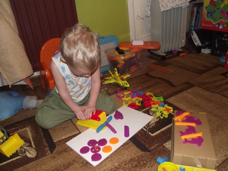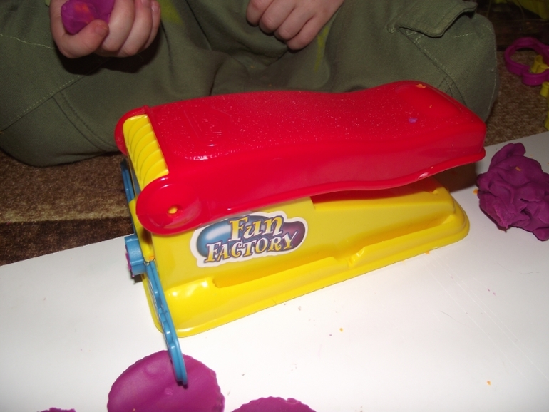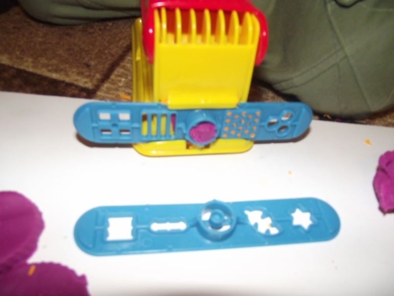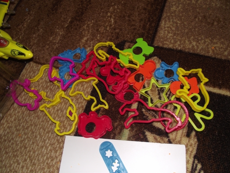 Набор этот довольно большой. Я очень удивилась, когда он пришел. Думала, будет меньше - за такие деньги... Самая главная фишка этого набора - вот эта "пластилиновыжималка" (так назвал ее сын))). Работает очень классно, ребенок самостоятельно спокойно выдавливает пластилин.